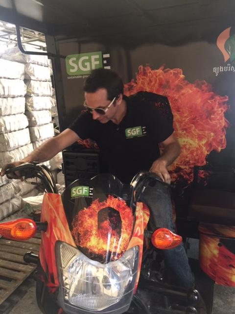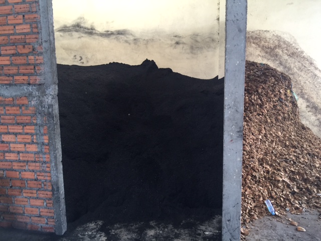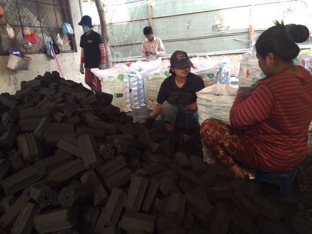 Carlo’s company is called SGFE. Sustainable Green Fuel Enterprises. Instead of using trees or wood, they use coconut shells to make their charcoal. This burns hotter, longer and cleaner than wood anyway, and the shells litter the city of Phnom Penh and the countryside, as coconut milk and meat is already a staple food source here.