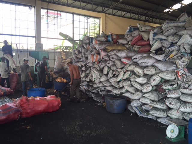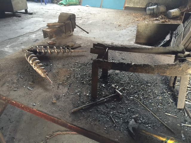 Lesley and I were very excited to get a tour of the SGFE compound, which is guarded by two dogs and an 8 foot high wall with a huge rolling gate. Inside, we met the team of almost 30 workers, who were quite busy on each step of the process, whether carting around the shells, chipping them, burning them or compressing them into the briquettes that you would ultimately use in your stove.