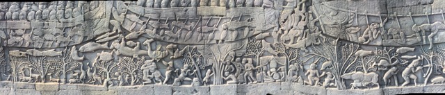Above: one of the many walkway walls carved from stone at Angkor Wat.