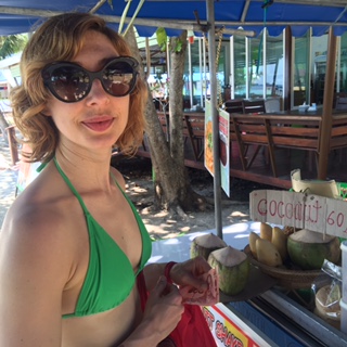 However, after breakfast as we walked into town to get coconut water we saw loads of monkeys. They are cute but when I saw the local get out of their way in search of food I knew these were cute from a distance. Sticking to the purpose we found a massive coconut to share and then it was off for a swim.