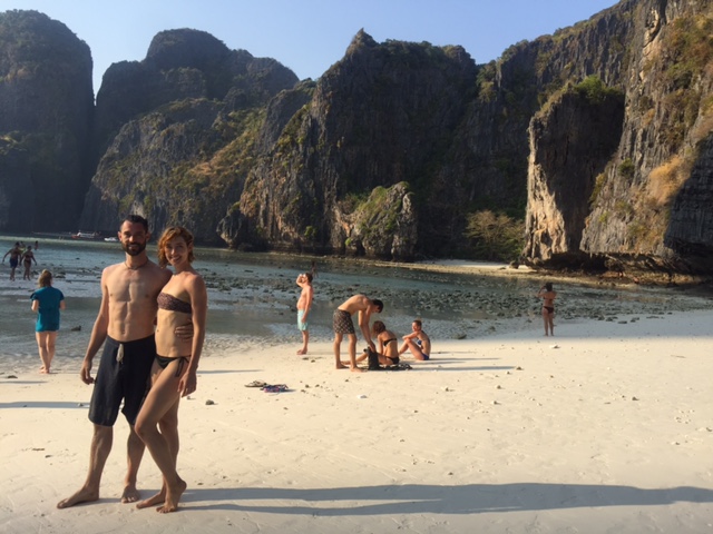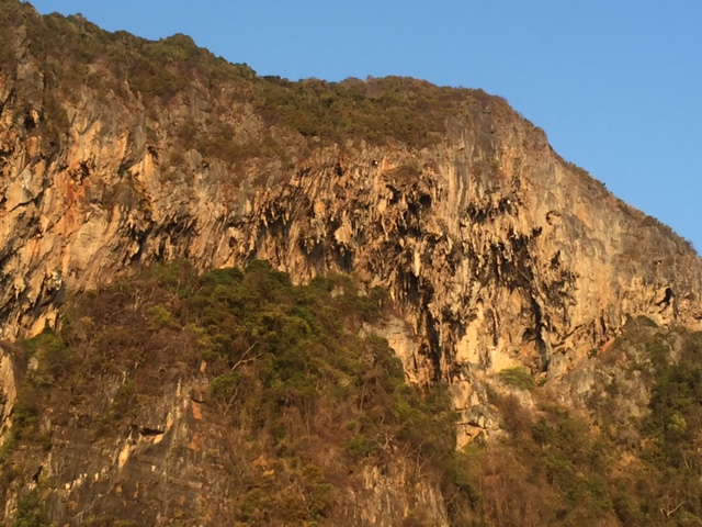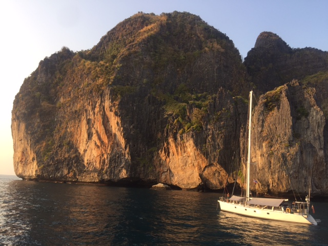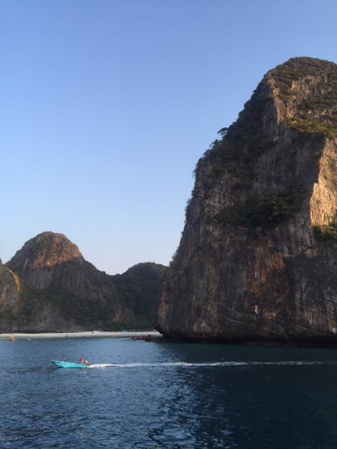 After another quick kayaking adventure on the east side of Phi Phi Lee, where LL and I found a secluded little crevasse in the 15 story high walls, our boat took us down around the souther tip of the island to an area of snorkeling and a 200 meter walk across the island to the infamous Maya Bay. To get to the walk way, we had to climb a ten foot rope wall. Then, on to the Maya Bay’s beach which was featured in the film, “The Beach.”