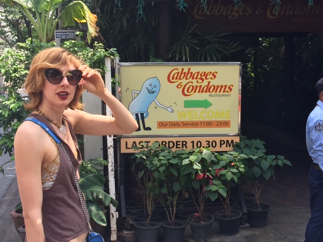 After that we walked down the street to the restaurant called cabbages and condoms, a place which Lesley had read about on a blog from someone who lives in Thailand and has celiac’s. The food was quite nice 🙂 the Decour was hilarious.